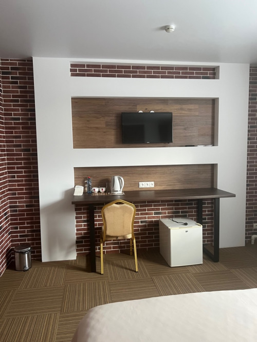 Двухкомнатный номер. В номере: двуспальная кровать, дополнительное место (диван), стол, стулья, шкаф, прикроватные тумбочки, холодильник, бра, гардероб, вешалка, щетка для одежды/обуви, Wi-Fi, телевизор, сейф, кондиционер.