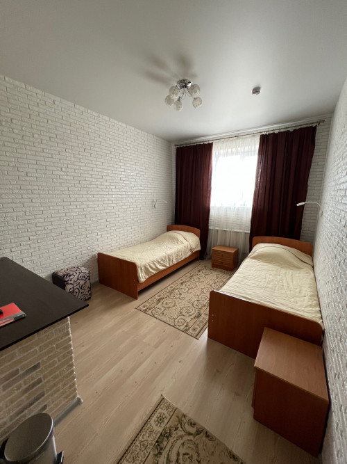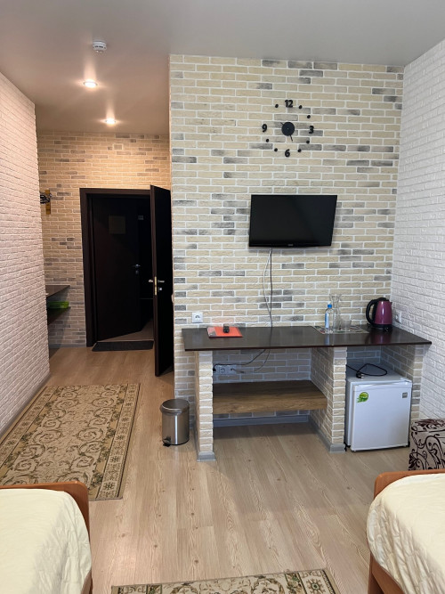В номере: две односпальные кровати, стол, стулья, шкаф, прикроватные тумбочки, холодильник, бра, гардероб, вешалка, щетка для одежды/обуви, Wi-Fi, телевизор.